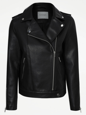 G21 Black Leather Look Biker Jacket Women at ASDA Biker Jacket George Asda • detachable hood • press stud funnel neck • long storm cuff sleeve • zip and press stud dual fastening • pull waist tabs •. black faux leather biker jacket features in our women's clothing sale collection • zip through funnel neck • drawcord detail at hem • short padded design • contrast tipping at cuff •. Biker Jacket George Asda.